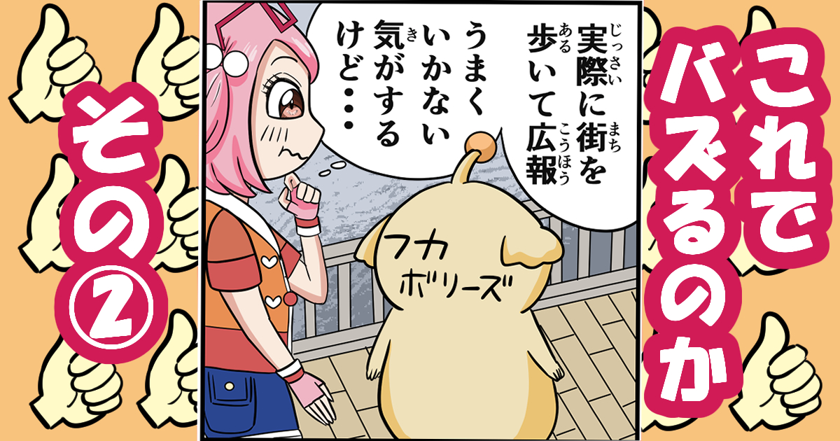 【漫画がバズる仕掛けを考えるモルダモルキ】②(ノウハウ漫画ではありません) 「ワクワク」のガチャマシーン 2026.03.202026.03.24 Date: 2025年12月5日 【漫画まんが(がバズる仕掛しか(けを考かんが(えるモルダモルキ】②(ノウハウ漫画まんが(ではありません) 皆みな(さん、こんにちは!モルダモルキです。 前回ぜんかい(描か(いた「【漫画まんが(がバズる仕掛しか(けを考かんが(えるモルダモルキ】①(ノウハウ漫画まんが(ではありません)」の続つづ(きのマンガを投稿とうこう(します。 「フカボリーズ」の認知度にんちど(を上あ(げるため、実際じっさい(に街まち(に出で(て、広報こうほう(活動かつどう(するモルダモルキたち。しかし、街まち(の住人じゅうにん(たちの反応はんのう(はいまいちで……。 どうぞ、お楽た(しみください♪ ラストのコマをよ~く見み(ると・・・ よ〜く見み(ると、フカボリンは書か(き間違まちが(えをしています。フカボリンらしいミスですね!😅 この"ミス"が新あら(たな展開てんかい(を生う(みます。明日あした(は③を投稿予定とうこうよてい(ですので、お楽た(しみください♪ 表情豊ひょうじょうゆた(かなロボット化か(!? フカボリーズでは、このように皆みな(でおかしなことをしたり、皆みな(でおかしな格好かっこう(をしたりするシーンが多おお(くあります。その一例いちれい(が2ページ目め(のマンガです。 皆みな(、ロボット化か(していますね! 作中さくちゅう(にもあるように、とある理由りゆう(でオタマちゃんはピアノの練習れんしゅう(に来こ(なくなってしまいます。その理由りゆう(は何なに(なのか、この続つづ(きが気き(になる方かた(は 「フカボリーズ1巻かん(」または「4話わ( すごいぞ オタマちゃん‼」をご覧らん(ください♪